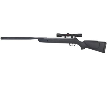 The new Varmint Stalker from Gamo features a black all-weather stock, a 4X32 scope and the new Bull Whisper barrel, a totally new designed fluted polymer jacketed steel bull barrel developed by Gamo with and integrated noise dampener. It also features a new recoil pad with up to 74% recoil absorption. Each Single Cocking System, Spring Piston break barrel is fitted and tuned with the famous Gamo ND52 noise dampening system which reduces muzzle noise up to 52%.The Varmint Stalker Air Rifle from Gamo is designed to provide high-power and quiet operation for use in any weather. The Hunter Stalker is equipped with the Bull Whisper barrel that provides great weather protection thanks to its fluted polymer jacketed steel bull construction. In addition, the Bull Whisper barrel provides greatly reduced volume thanks to an integrated noise dampener. The 4x magnification, 32-millimeter objective diameter rifle scope, meanwhile, provides precision target acquisition. Offering a whopping 1250 feet per second (FPS) velocity and up to 74 percent recoil absorption with its recoil pad, the Varmint Hunter Stalker is built to bring the small game in.